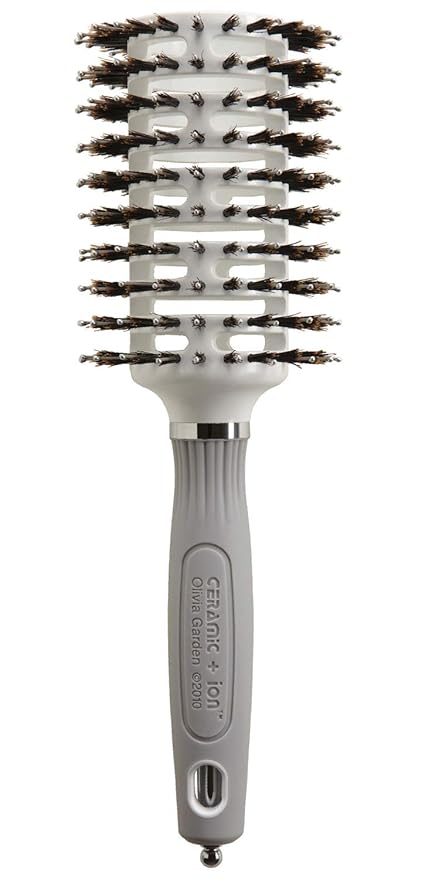 Olivia Garden Ceramic + Ion Turbo Vent Combo Hair Brush - Not Electrical - Ionic and 100% Boar Bristles - Professional Round Blowout Brush for Normal to Thick Hair
