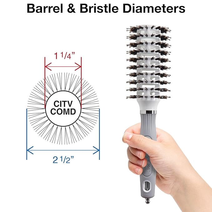 Olivia Garden Ceramic + Ion Turbo Vent Combo Hair Brush - Not Electrical - Ionic and 100% Boar Bristles - Professional Round Blowout Brush for Normal to Thick Hair