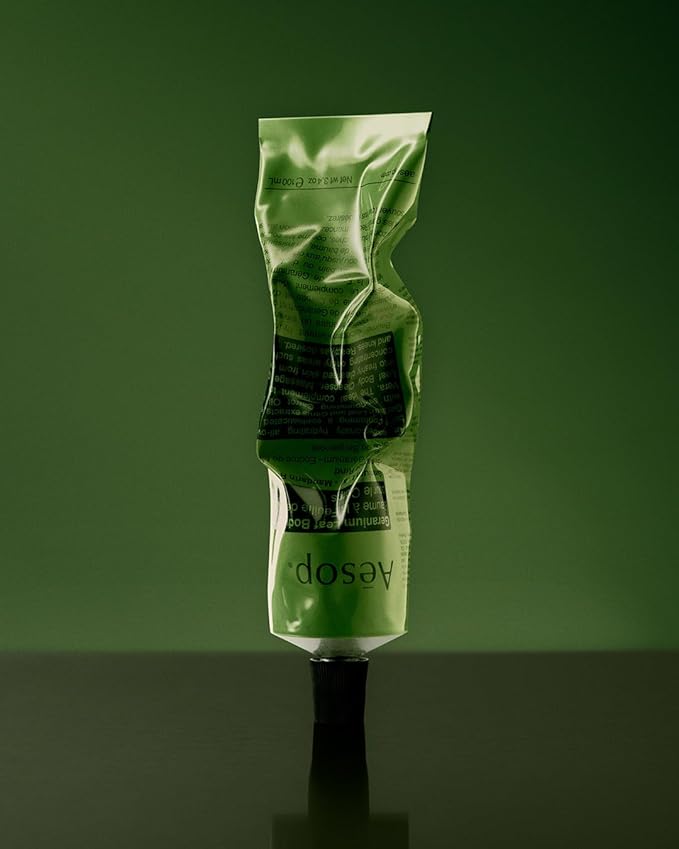 Aesop Geranium Leaf Travel Body Balm | Soften and Hydrate Skin with Nut Oils, Geranium Leaf and Citrus Extracts | 3.4oz / 100mL