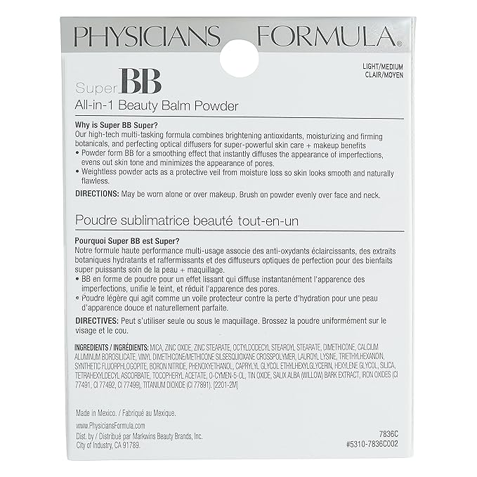Physicians Formula Super BB Cream All-in-1 Beauty Balm Powder Light/Medium | Dermatologist Tested, Clinicially Tested