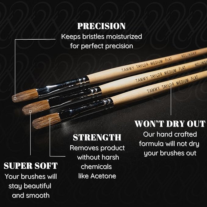 Tammy Taylor Acrylic Nail Brush Cleaner Liquid, Removes Solid Gel Nail Polish, Acrylic Dip Powder, All-in-One Poly Gel Slip Solution + Kolinsky Sable Nail Brush Conditioner, Cleaner & Restorer (4oz)