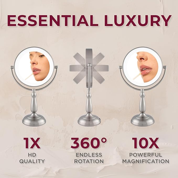 - MAGNIFICATION: Available in 5-time, 10-time, or 12-time by 1-time magnification configurations, one side is a full view 1X reflection that’s ideal for everyday makeup and hairstyling, while the other side is a convenient 5X 10X or 12X magnification to zoom in on every fine details