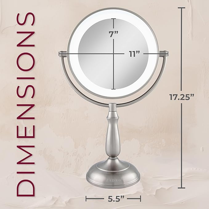 Zadro 11" Makeup Mirror with Lights and Magnification Dimmable Touch LED Lighted Makeup Mirror with Magnification