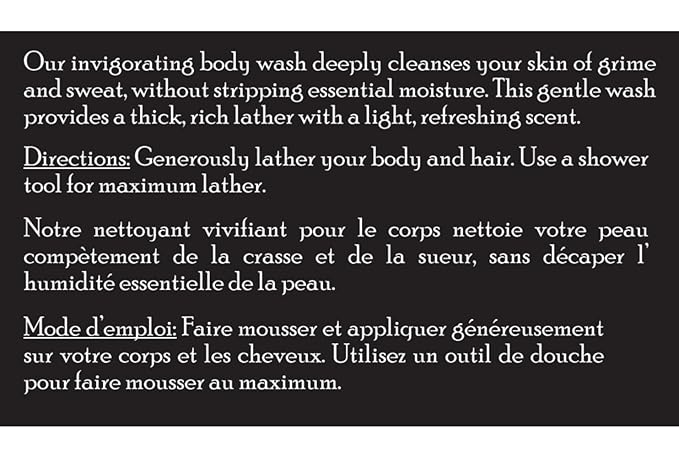 - What It Does: Our invigorating body wash for men deep-cleans your skin of oil, sweat, and grime without stripping essential moisture.