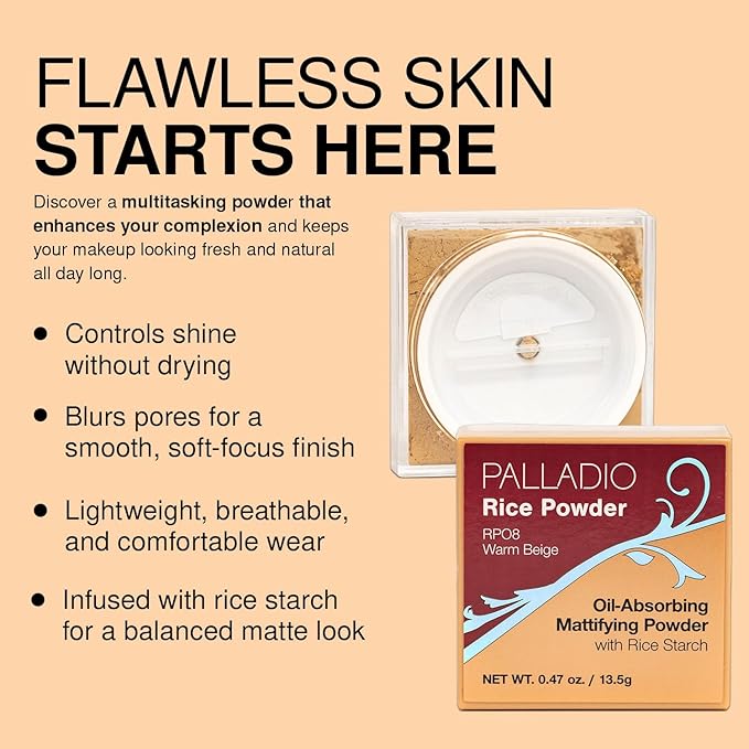 About This RICE POWDER ABSORBS OIL & SETS MAKEUP: Palladio's loose rice powder helps you avoid shine by absorbing excess... Read more