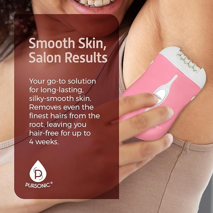 Pursonic Fe120P Cordless Epilator with 40 Tweezers - Rechargeable 2 Speed Epilators Hair Removal for Women - Compact Hair Removal Device for Arms, Legs, Underarms & Bikini Area (Pink)