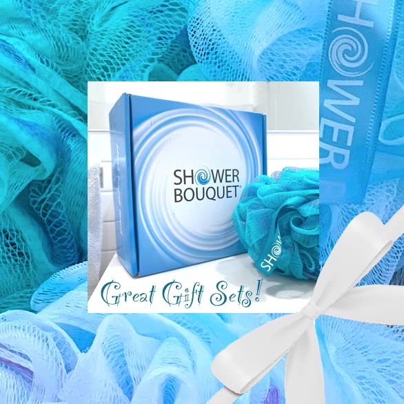 SHOWER BOUQUET Loofah-Bath-Sponge XL Swirl-Mix-Color 4-Pack // Extra-Large 75g Mesh Luffa Loofa Loufa Puff Pouf Set/Exfoliating Body Scrubber for Women and Men - Exfoliate & Soothe Face & Body