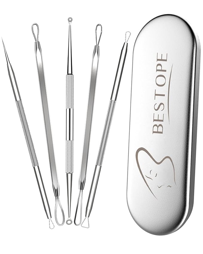 BESTOPE Blackhead Remover Blackhead Removal Pimple Comedone Extractor Tool - Treatment for Blemish Whitehead Popping Zit Removing with Metal Case (Silver)