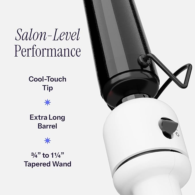 HOT TOOLS Professional Nano Ceramic Extra Long Tapered Curling Iron for Shiny Curls, 3/4 to 1 1/4 Inches
