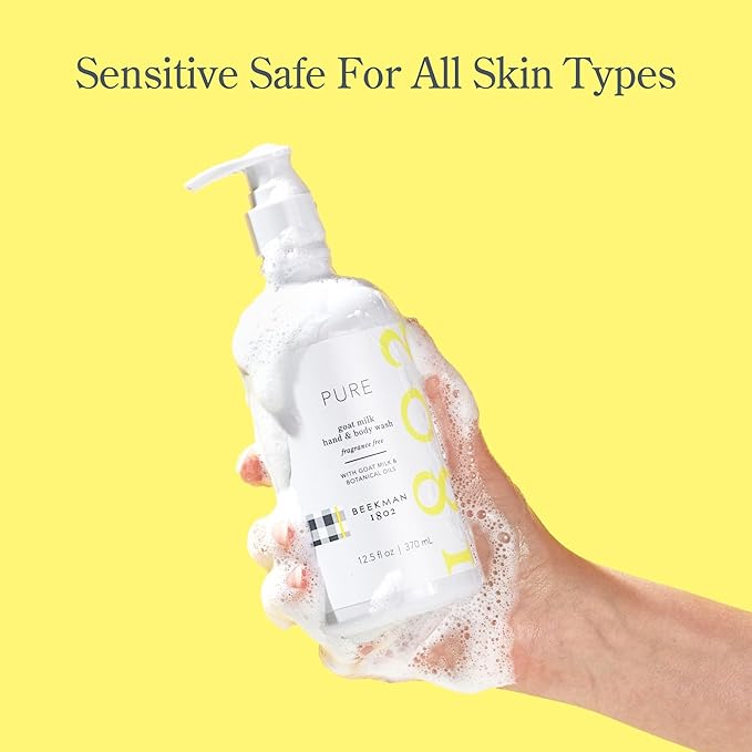 Beekman 1802 Goat Milk Hand Wash, Pure - Fragrance Free - 12.5 oz - Cleanses, Softens & Nourishes Skin - Rinses Away Impurities - Good for Sensitive Skin - Cruelty Free - Ready For Use, Pump Inserted