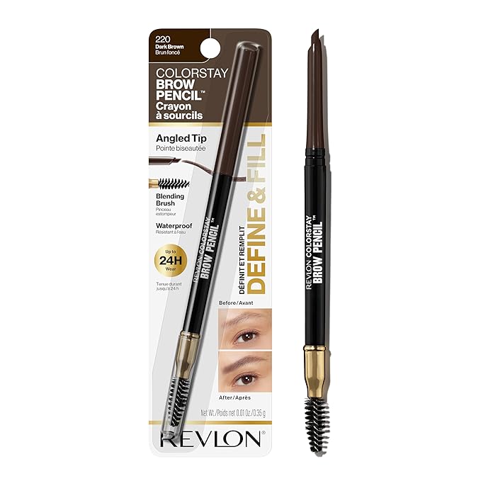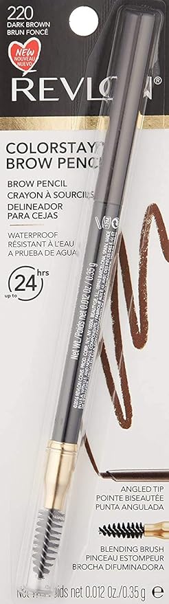 Revlon Eyebrow Pencil, Colorstay Eye Makeup with Eyebrow Spoolie, Waterproof, Longwearing Angled Precision Tip, 220 Dark Brown, 0.01 Oz