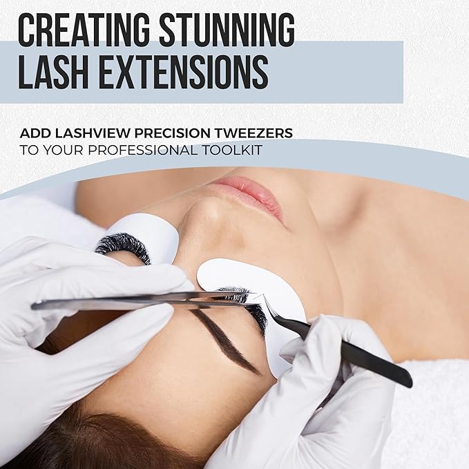 LASHVIEW Lash Tweezer, Vetus Curved Eyelash Tweezers for Profissional Grafting Eyelash Extension, Stainless Steel Needle Nose Tweezers for Lash Extension Stickers Precision Electronics, ST15