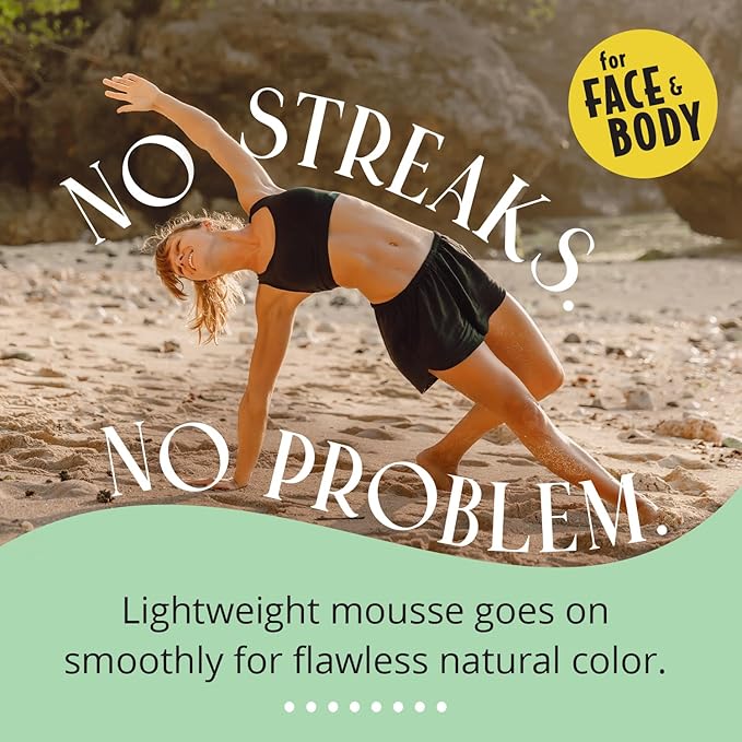 - For All Skin Types: A full-coverage sunless tanning mousse that hydrates the skin; It is also ideal for enhancing abs, darkening stretch marks and blending in cellulite so you can enjoy a healthy, toned appearance