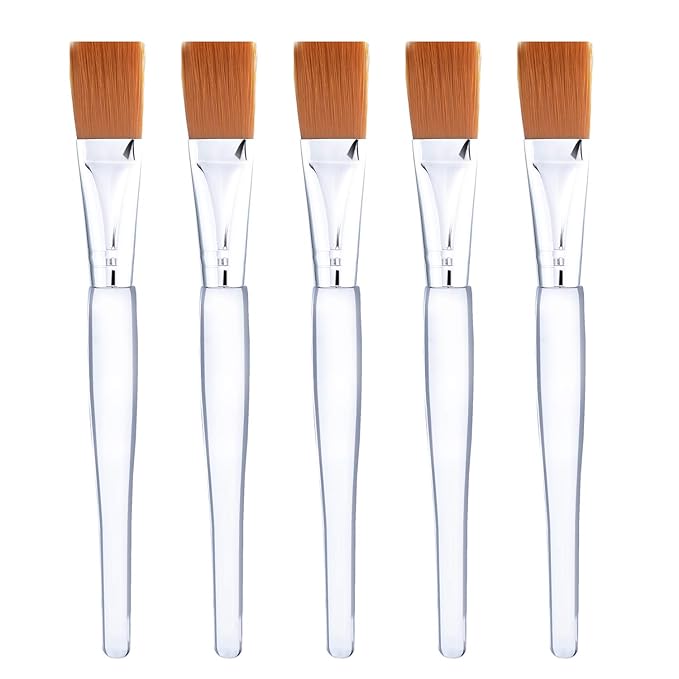 Facial Mask Brush Makeup Brushes Cosmetic Tools with Clear Plastic Handle, 5 Pack (Silver with Yellow Brush)