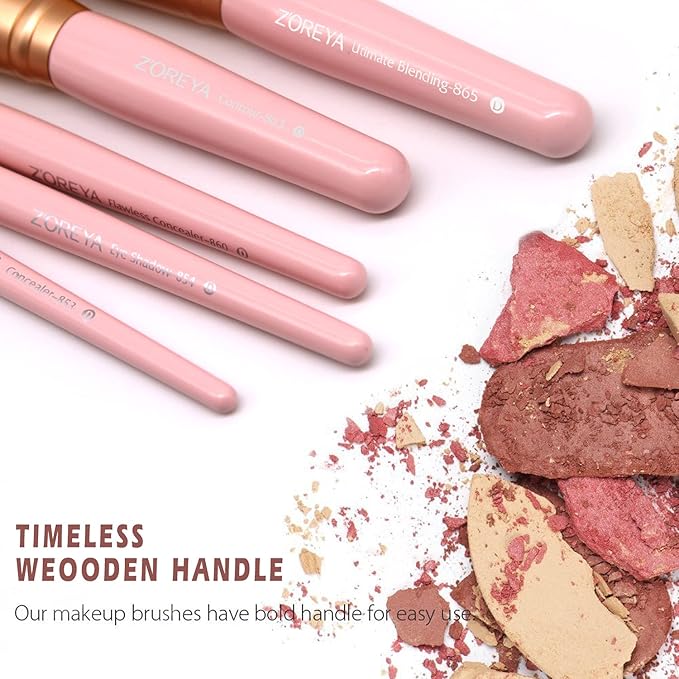 Z'OREYA Makeup Brushes 15Pcs Makeup Brush Set Premium Synthetic Kabuki Brush Cosmetics Foundation Concealers Powder Blush Blending Face Eye Shadows Brush Set (Pink)