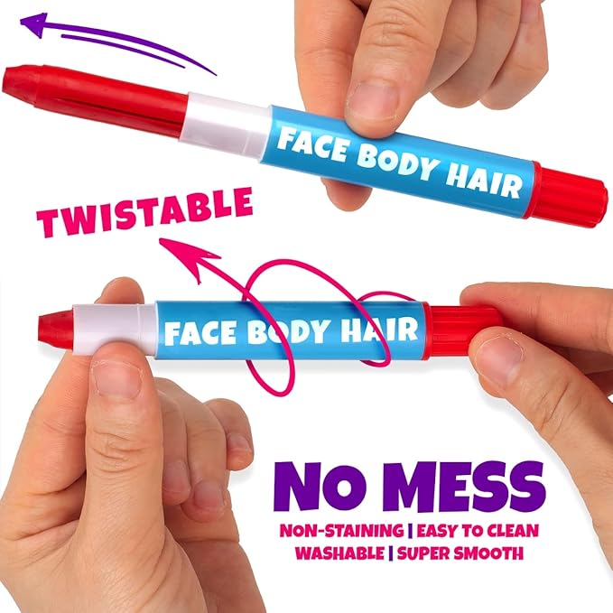 - โ ๐๐ฎ๐๐ ๐๐ผ ๐จ๐๐ฒ, ๐ก๐ผ ๐ ๐ฒ๐๐: Get creative with our easy-to-use, water-based face paint crayons. No water necessaryโsimply twist out the crayon, apply like coloring, and wipe off easily with a damp cloth. With no spills and no cleanup required, they are the cleanest crayons available. Perfect for kids and hassle-free for parents!