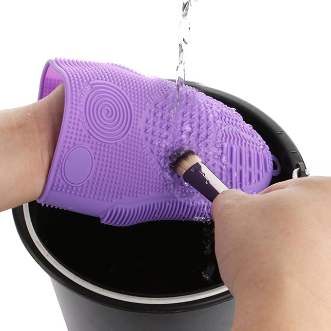 Makeup Brush Cleaner Glove Mat Mitt Silicone Cosmetic Cleaning Scrubber Tool Face Brushes and Eye Brush Washing Pad Purple