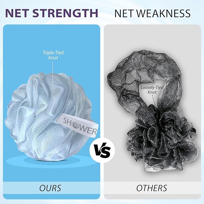 About This HAND MADE, SOFT MESH Loofahs – XL multi-color 75g PE luxury poufs with Triple-Tied Knot to last longer... Read more
