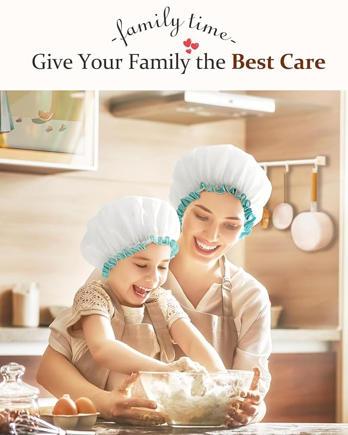 mikimini Shower Cap for Women and Girls,Reusable,Waterproof, Washable, Cute and Soft,White