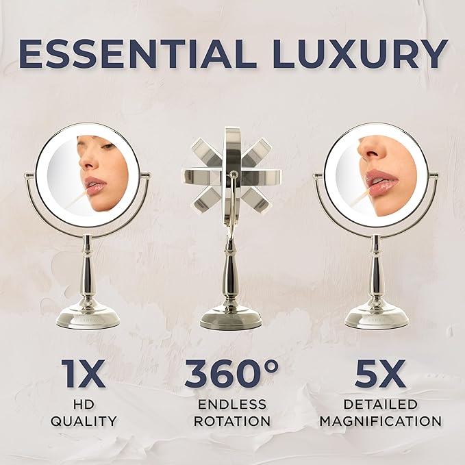 - MAGNIFICATION - Offers versatile magnification options, available in 5X, 10X, or 12X, allowing you to choose the level of detail you need for precise makeup application or grooming, while the reverse side features HD-quality glass that ensures a flawless, true-to-life reflection, providing the perfect balance of clarity and accuracy for every beauty routine.