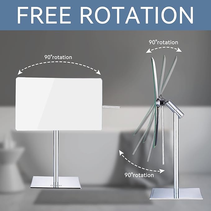 DOWRY 8 Inch 3X Magnified Tabletop Rectangular Adjustable Makeup Mirror,304 Stainless Steel,Polished Chrome 2234(3X)