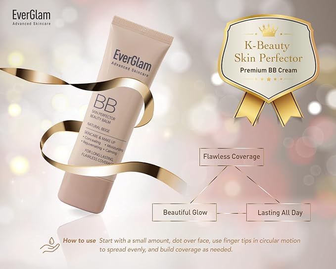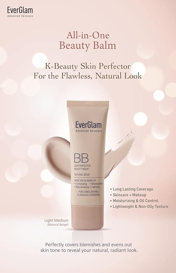 K-Beauty Skin Perfector Korean BB Cream, Light Medium - Flawless, Natural Glow in Seconds | Multi-Function Tinted Moisturizer: Stays On All Day, Dewy, Water-Resistant, Oil-Controlling