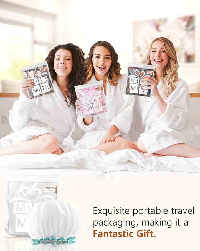 mikimini White Shower Cap for Long Hair 1 Pack, 12 inch large size,Waterproof Washable Hair Caps for Women and Girls, Super Cute and Extra Large