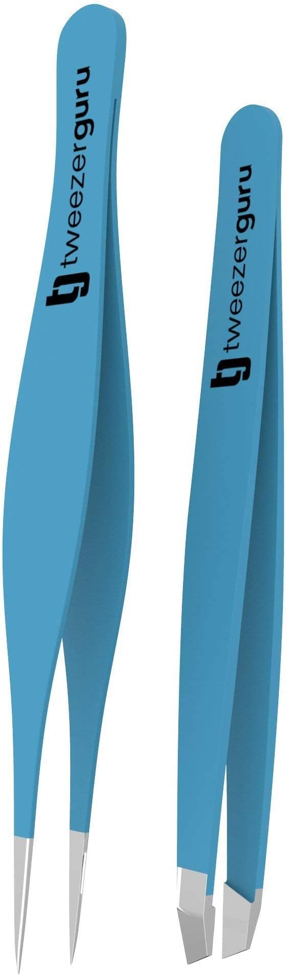 Tweezer Guru Eyebrow Tweezers for Women & Men - Set of 2, Professional, Stainless Steel, Slant and Pointed Tweezers for Ingrown Hair, Splinters and Blackhead Removal (Teal)