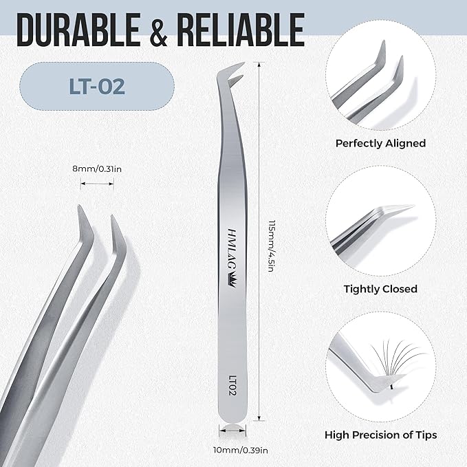 LASHVIEW Lash Tweezer, High Precision Stainless Steel Volume Eyelash Tweezers, Eyelash Extension Tweezers for Profissional Grafting lash Extension, LT02