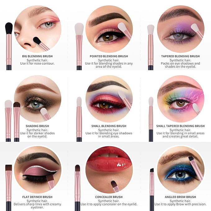 - ★ROSE GOLD WITH BLACK DESIGN: This eye brush set looks very chic and fashionable in the most popular beautiful color , A must-have in your makeup collection, perfect as a gift for your friends,they will love this amazing brush set