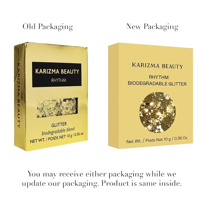 - KARIZMA Rock n’ roll, baby! Feel the music with our rhythm biodegradable chunky cosmetic glitter. Rhythm is an evening metallic essential mix of gold stars, speckles, hexagons and dust. Inspired by working closely with celebrities and influencers on press appearances, red carpet, photoshoots and music videos.