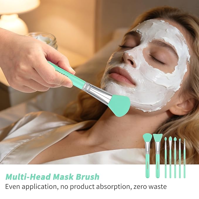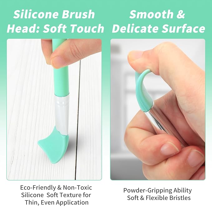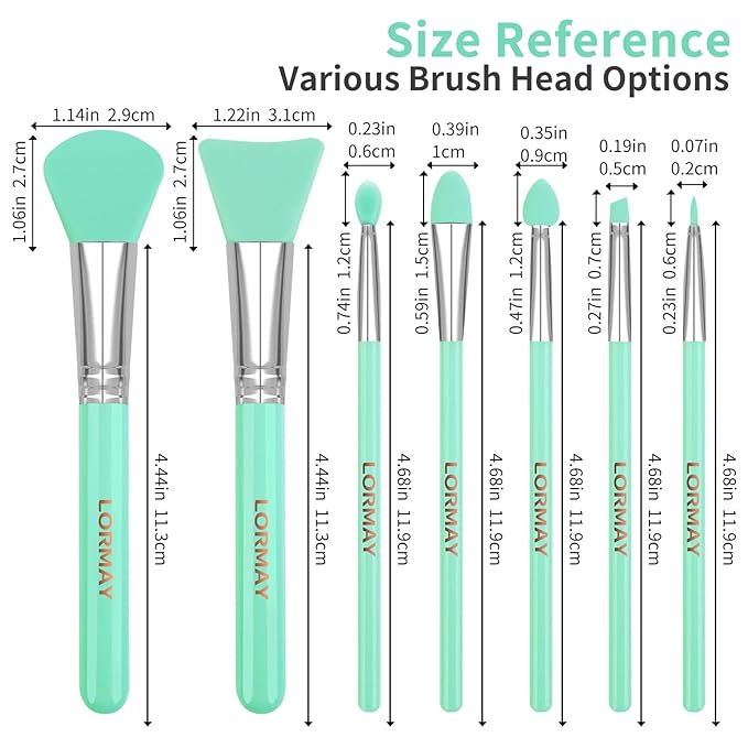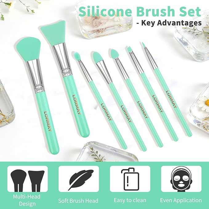LORMAY 7 Pcs Silicone Brush Applicator Kit for UV Resin Epoxy Art Crafting and Cream Makeup Products (Mint Green)