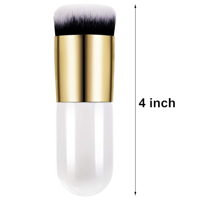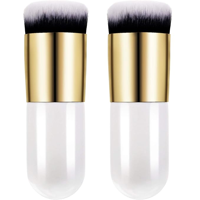 2 Pieces Foundation Brush Chubby Makeup Brush Kabuki Makeup Brush Travel Powder Brush for Blending Liquid, Cream or Powder Cosmetics (white)