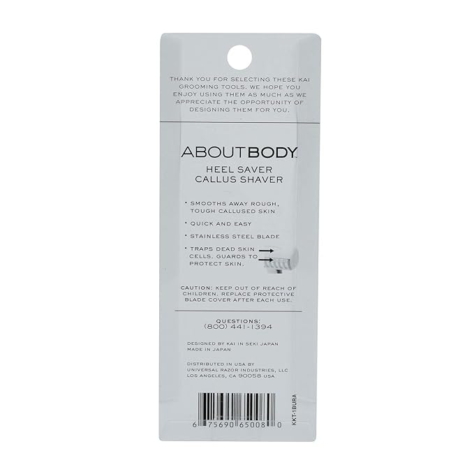 Kai About Body Heel Saver Stainless Steel Callus Shaver for Women; Includes 1 Heel Shaver; Smooth Away Rough, Thick, Callused Skin on Heels; Foot Scraper for Callus Removal; Dead Skin Remover for Feet