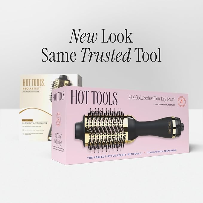 HOT TOOLS 24K Gold Blow Dryer Brush - Hot Air Brush for Salon-Worthy Volume in One Step - Volumizer with 24K Gold Technology for Fast Styling & Long-Lasting Results