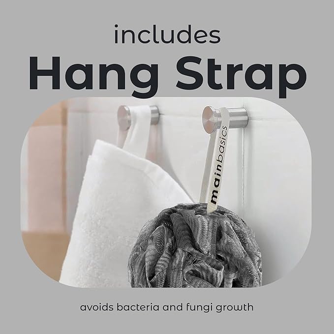 - LOOFAH PACK – MainBasics pack of 3 bath pouf infused with activated charcoal for a deep skin detox. We recommend changing your loofah after 30 days for optimal hygiene and to prevent bacterial growth. Our loofah has a soft neutral color to fit any bathroom décor.