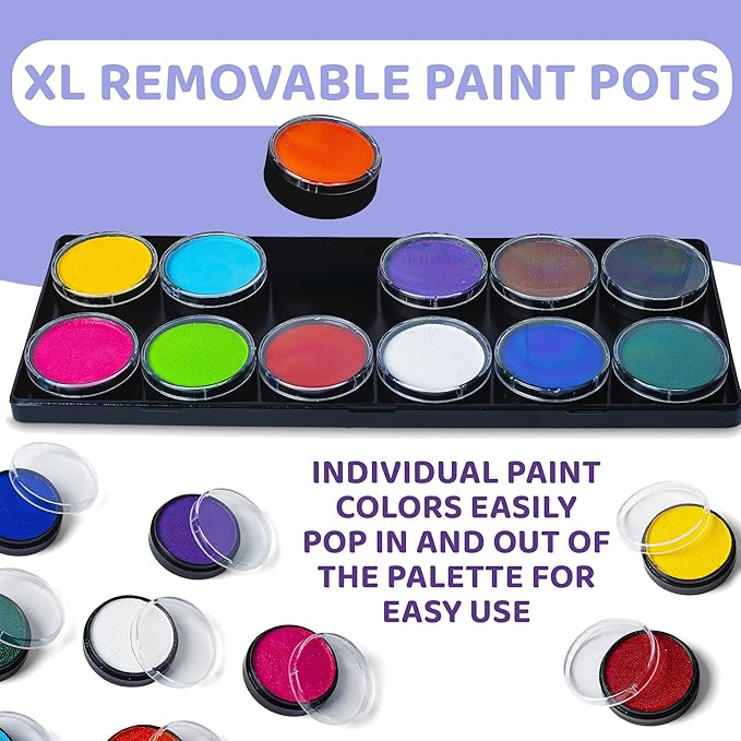 - โ ๐ฆ๐ฎ๐ณ๐ฒ ๐ณ๐ผ๐ฟ ๐๐น๐น ๐ฆ๐ธ๐ถ๐ป ๐ง๐๐ฝ๐ฒ๐: Perfect for all skin types including those with sensitive skin, our water-based body & face paint kits for skin are fully EEC, UK & US compliant, skin safe, and crafted with non-toxic, cosmetic-grade, hypoallergenic, fragrance-free ingredients. As with all cosmetics, we advise that a small skin patch test is done before applying as everyoneโs skin is different. To remove, simply wipe the face with a damp cloth.