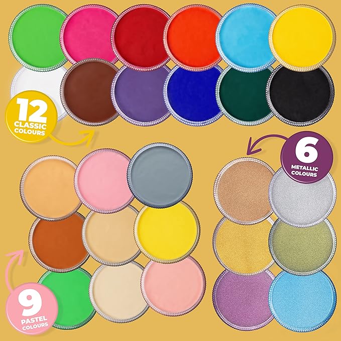- β π¦πππ ππ’π₯ πππ π¦πππ‘ π§π¬π£ππ¦: Perfect for all skin types even with sensitive skin, our water-based face & body paint for skin are fully EEC, UK & US compliant, skin safe, and crafted with non toxic, cosmetic-grade, hypoallergenic, paraben-free, fragrance-free ingredients. As with all cosmetics, we advise that a small skin patch test is done before applying as everyoneβs skin is different. To remove, simply wipe the face with a damp cloth.