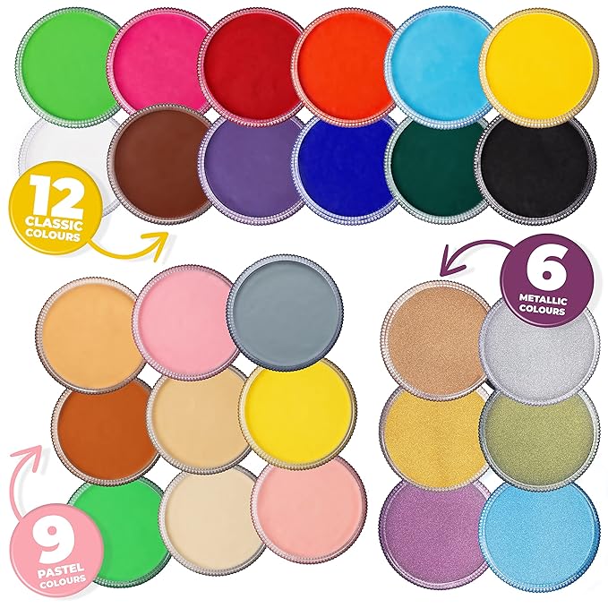 - β π¦πππ ππ’π₯ πππ π¦πππ‘ π§π¬π£ππ¦: Perfect for all skin types even with sensitive skin, our water-based face & body paint for skin are fully EEC, UK & US compliant, skin safe, and crafted with non toxic, cosmetic-grade, hypoallergenic, paraben-free, fragrance-free ingredients. As with all cosmetics, we advise that a small skin patch test is done before applying as everyoneβs skin is different. To remove, simply wipe the face with a damp cloth.