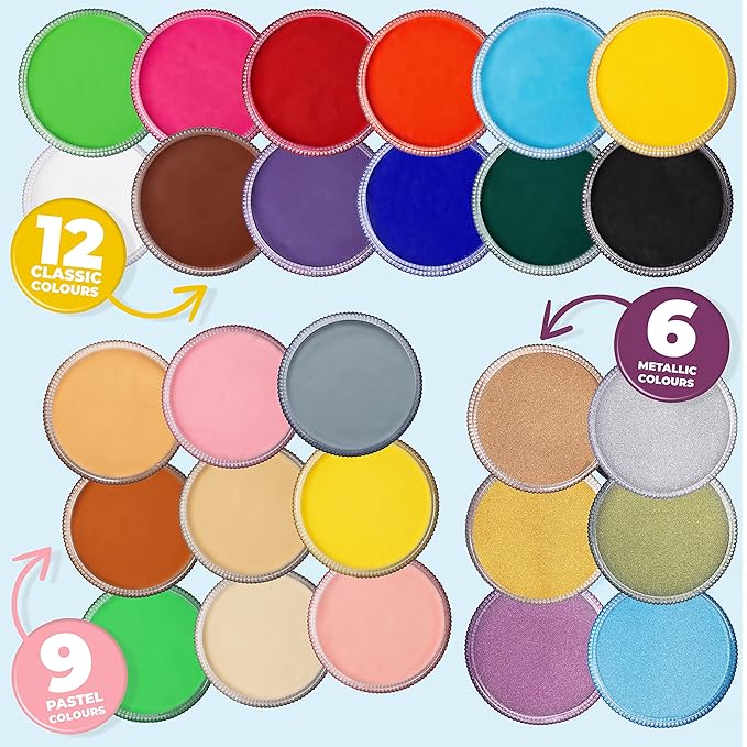 - β π¦πππ ππ’π₯ πππ π¦πππ‘ π§π¬π£ππ¦: Perfect for all skin types even with sensitive skin, our water-based face & body paint for skin are fully EEC, UK & US compliant, skin safe, and crafted with non toxic, cosmetic-grade, hypoallergenic, paraben-free, fragrance-free ingredients. As with all cosmetics, we advise that a small skin patch test is done before applying as everyoneβs skin is different. To remove, simply wipe the face with a damp cloth.