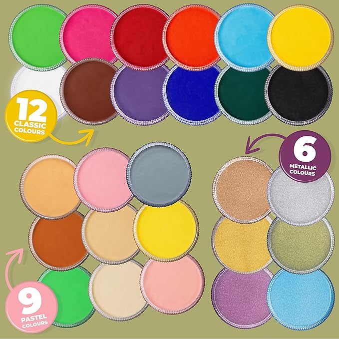 - β π¦πππ ππ’π₯ πππ π¦πππ‘ π§π¬π£ππ¦: Perfect for all skin types even with sensitive skin, our water-based face & body paint for skin are fully EEC, UK & US compliant, skin safe, and crafted with non toxic, cosmetic-grade, hypoallergenic, paraben-free, fragrance-free ingredients. As with all cosmetics, we advise that a small skin patch test is done before applying as everyoneβs skin is different. To remove, simply wipe the face with a damp cloth.