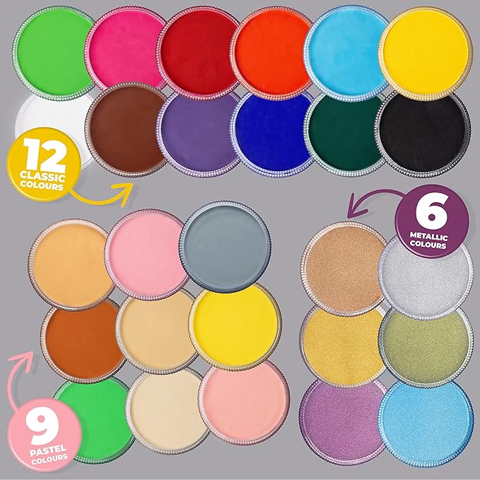 - π ππ‘π§ππ‘π¦π π£πππ ππ‘π§, ππ₯πππ§ π©πππ¨π: Our professional facepaints and body paint boasts unmatched pigment intensity and vivid colors that resist cracking or fading, ensuring long-lasting waterproof performance. Experience the best value for your creative endeavors with our non toxic water activated face paints.