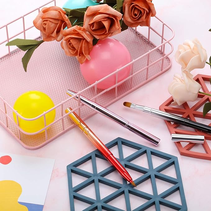 TOODOO 3 Pack Retractable Lip Brush for Lipstick with Cap Dual-ended Liner Foundation Makeup Brush Sets Travel Applicators(Gradient Black, Gradient Red, Bright Pink)