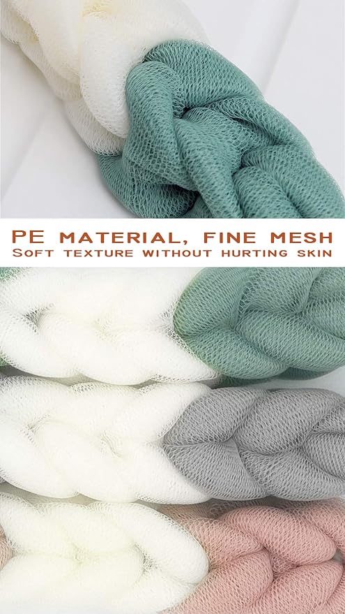 - ✔️USE FLEXIBLE: The mesh of bath sponge was soft and durable enough to used on the most delicate skin. would never scratch your skin. It also can effectively clean the skin and dirt. Perfect for cleaning the back, neck, shoulders, feet and hard to reach areas. the durable shower sponges that will not fall apart