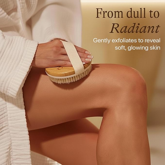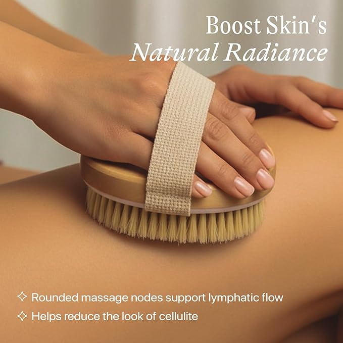 Dry Brushing Body Brush for Lymphatic Drainage & Cellulite - Natural Brustles for Wet and Dry Brushing, Body Exfoliating Brush with Massage Nodes for Soft & Smooth Skin