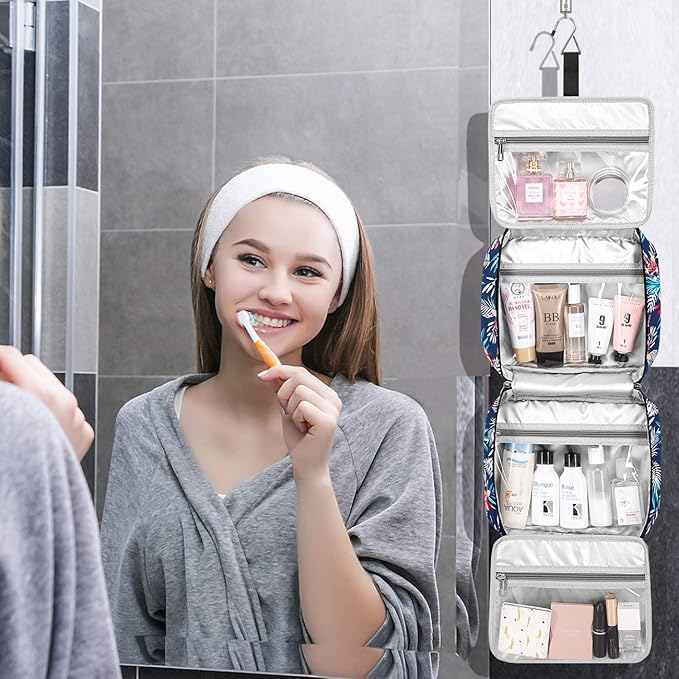• Waterproof & Leak-proof Interior Design - Not only will your toiletries not leak out into your suitcase during travel, but you can also use this in the shower as an organized shower bag since the material can easily stand up to water.