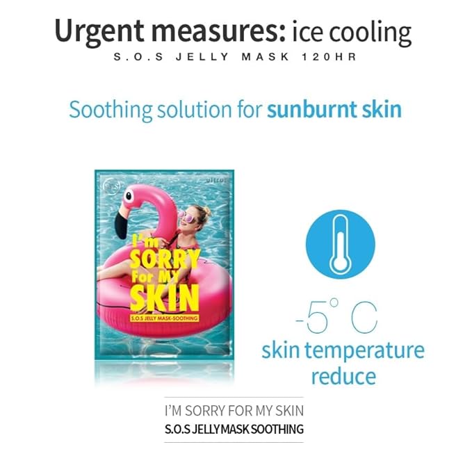 I'M SORRY FOR MY SKIN Jelly Face Mask Korean Skin Care, Hydrating & Calming after Sun Exposed, Self Care Items for Soothing and Sensitive Types, Gifts for Women, Pack of 10 (Cooling SOS Soothing Mask)