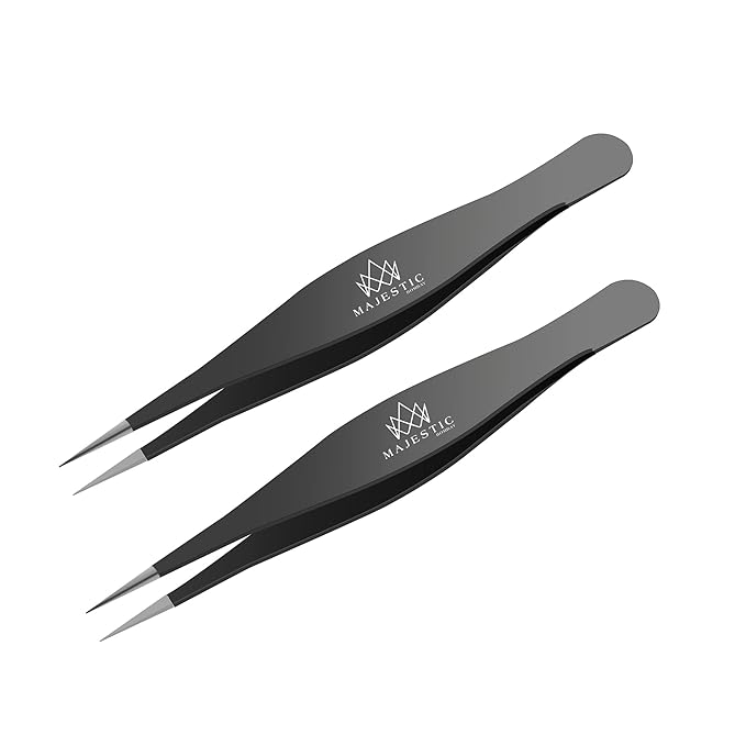 Majestic Bombay Fine Point Tweezers for Women and Men – Splinter Ticks, Facial, Brow and Ingrown Hair Removal–Sharp, Needle Nose, Surgical Tweezers Precision Pluckers best tweezers for chin hair