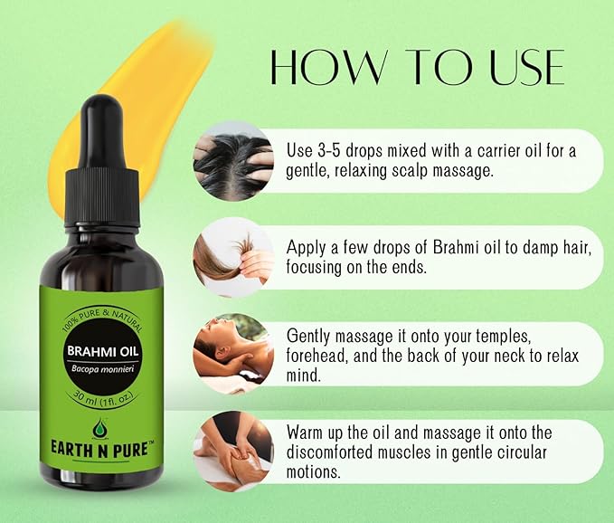 Earth N Pure Brahmi Oil for Hair, Cold Pressed, Natural and Therapeutic Grade with Glass Dropper - 30 ML