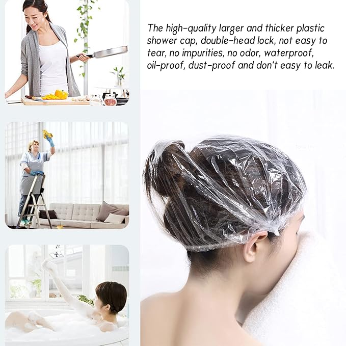 YIZIJIZI 30PCS Disposable Shower Caps, Large Thick Clear Waterproof Shower Cap for Women, large Size 20.5", Home Use, Spa, Hotel and Hair Salon, Clear Shower Caps for Travel
